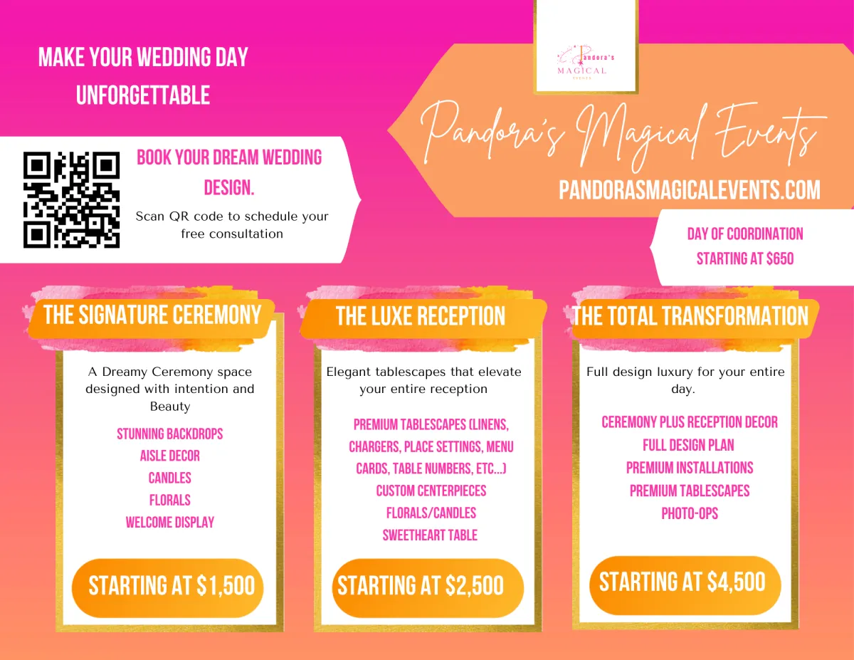 Consult: Book a free 15-minute consultation with Pandora to start planning your Big Day!